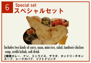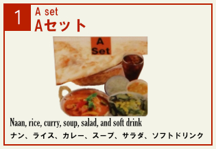 ナン/ライス/カレー/スープ/サラダ/ソフトドリンク