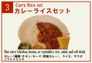 カレー1種類(チキン/キーマ/野菜カレー)/ライス/サラダ/ソフトドリンク