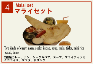 2種類カレー/ナン/シークカバブ/スープ/マライティッカ/ミニライス/サラダ/ドリンク